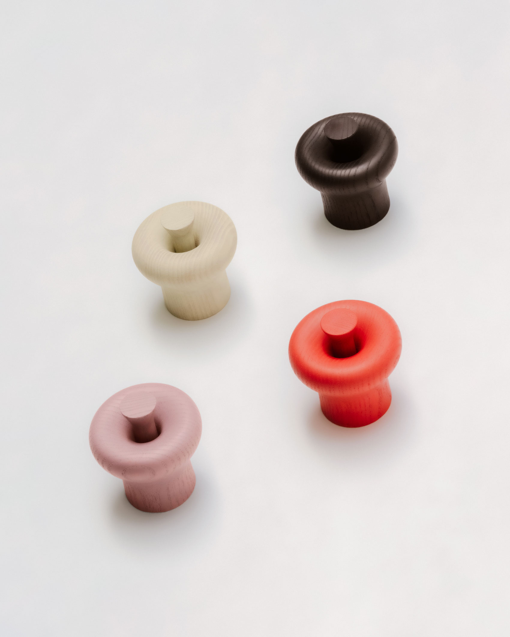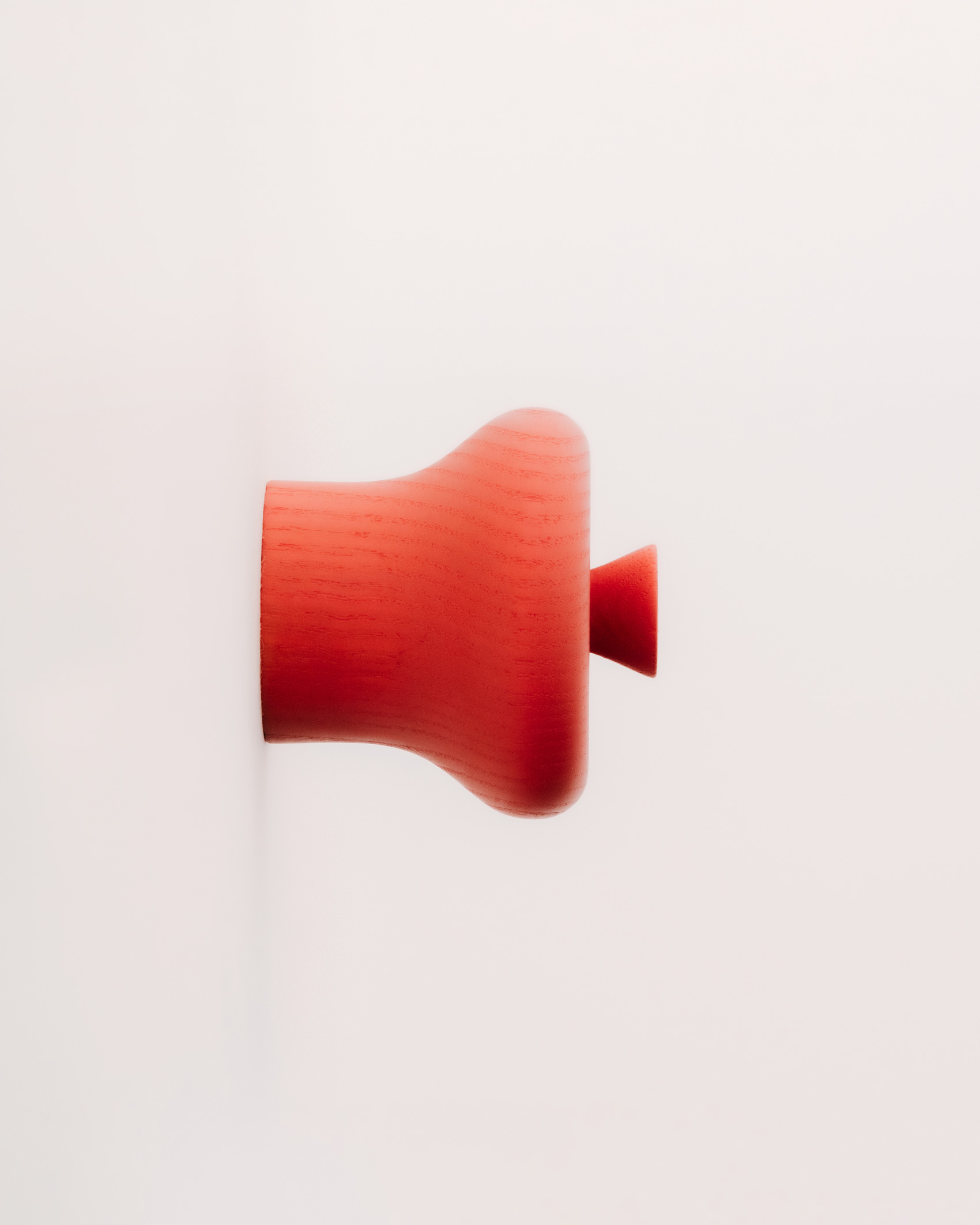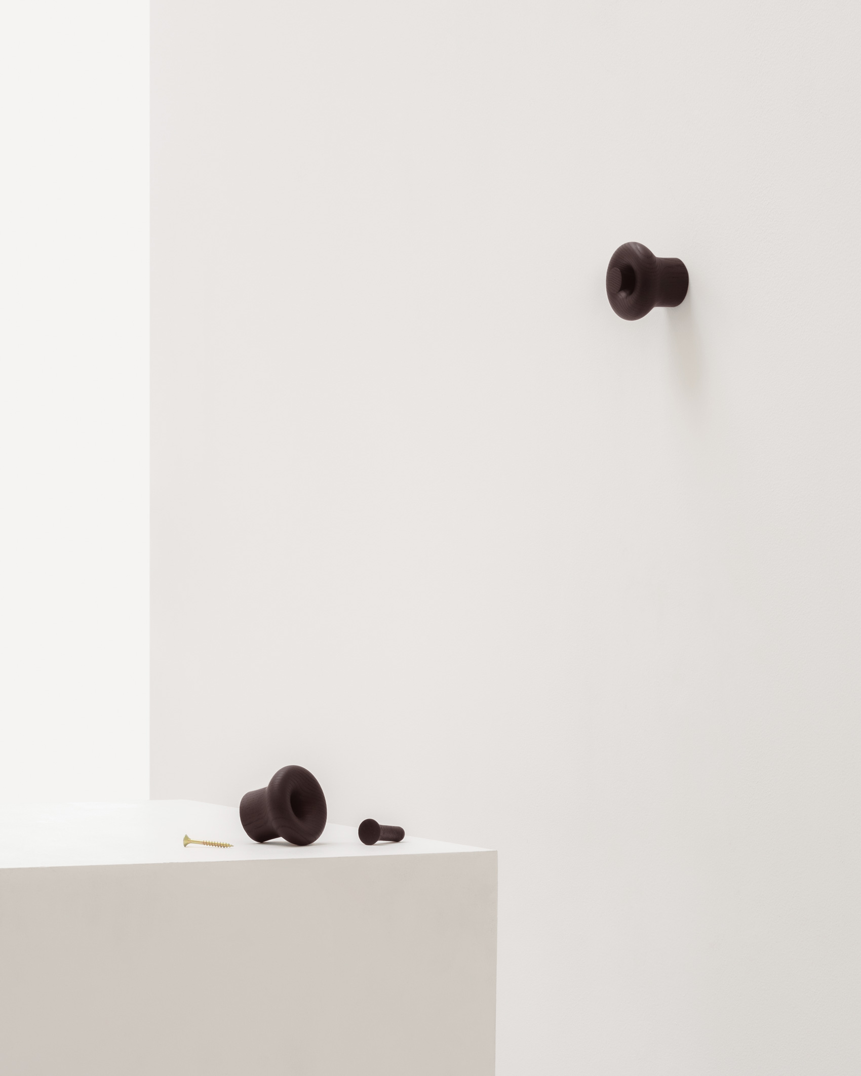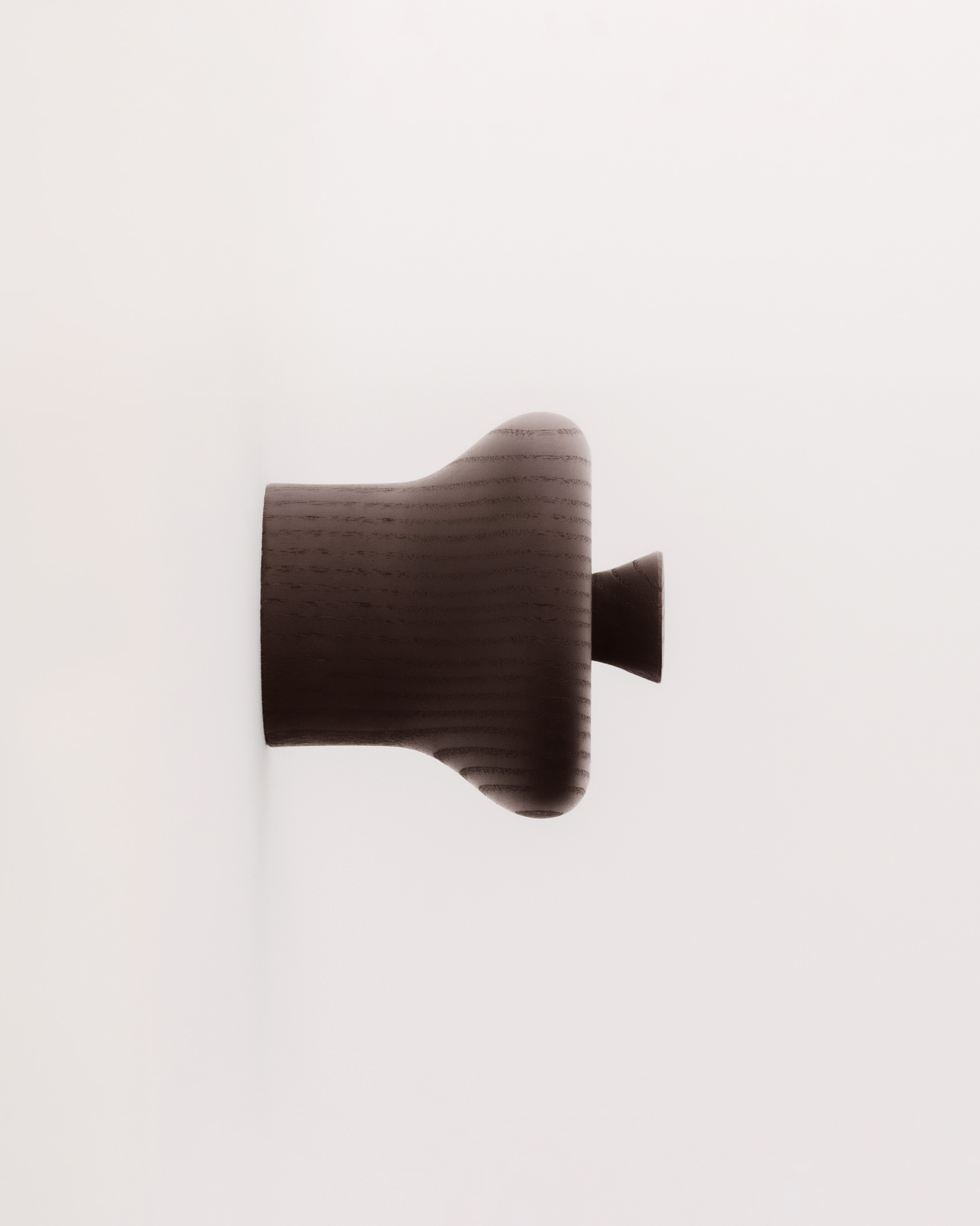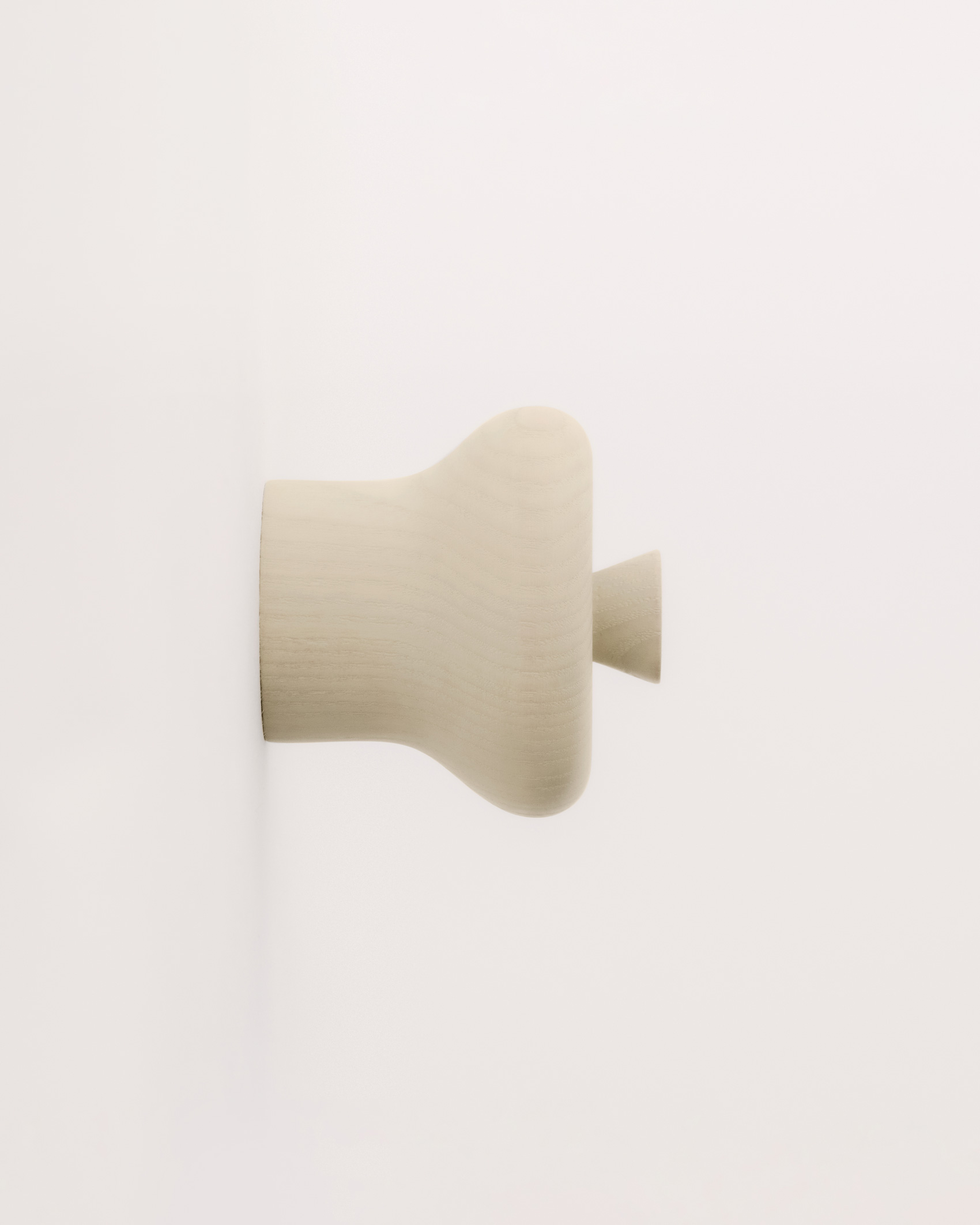 A straightforward object, as direct as its shape, as its function, as its fabrication and as its installation. Api is a coat hook to install on the wall, with a soft and tactile form it invites the user to carefully hang its belonging. The shape of the hook is welcoming to the eye and to the hand, it also says a lot about how it is made. A turned piece of wood designed with curves, like an organic part of the house, it creates a natural discreet presence. Api comes as it is, wood parts and screw, nothing else, the shape is designed to hide the screw head once installed with a small additional dowel that hides the mount as well as providing a secondary hooking function. Available for purchase here ︎︎︎